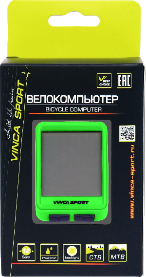 Компьютер беспроводной, 12 функций, зеленый с черным, инд.уп. Vinca Sport