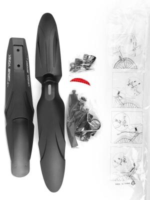 Комплект велосипедных крыльев с регулируемой длиной заднего крыла. Подходит для велосипедов с диаметром колеса 24-28".