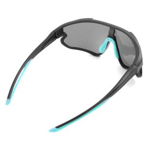Очки велосипедные, матово-черная с голубым оправа, серые линзы