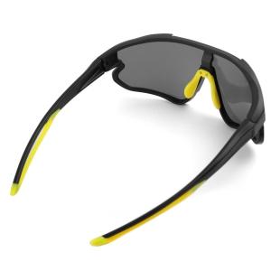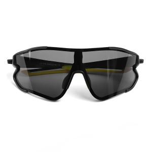 Очки велосипедные, матово-черная с лаймом оправа, серые линзы.