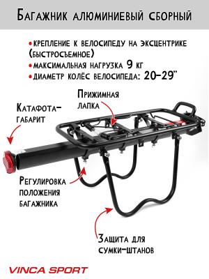 Багажник алюм. на под. штырь с эксцентриком 26"-28", с "ушами", с приж.лапкой, светоотражат., черный