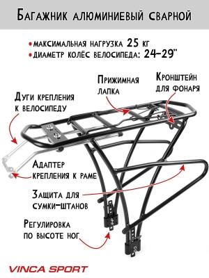 Багажник алюм. регул. 26"-28" с прижим. лапкой, площадкой для фонаря и крепл. насоса, черный