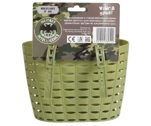 Корзинка детская на руль для вел-да 12"-14", зеленая, 200x150x130мм, "Милитари"