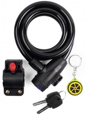 Замок  c брелоком 12*1200мм, с защитой от влаги и креплением,  черный, инд. уп. Vinca Sport