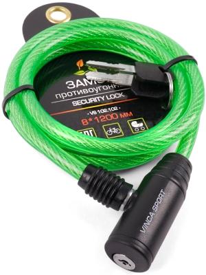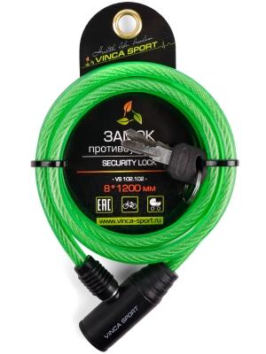 Противоугонный спиральный замок зелёного цвета в индивидуальной упаковке Vinca sport.