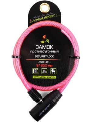 | Замок велосипедный 8*650мм, розовый тросик. инд.уп. Vinca Sport |