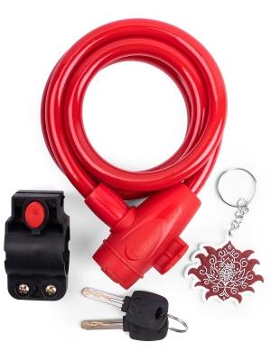 Замок c брелоком 12*1200мм, с защитой от влаги и креплением, красный, инд. уп. Vinca Sport