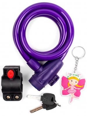 Замок c брелоком 12*1200мм, с защитой от влаги и креплением, фиолетовый, инд. уп. Vinca Sport
