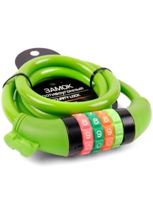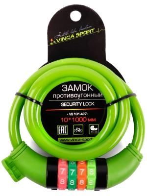 | Замок велосипедный кодовый 10*1000мм, зеленый тросик, инд.уп. Vinca Sport |