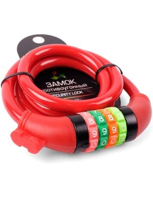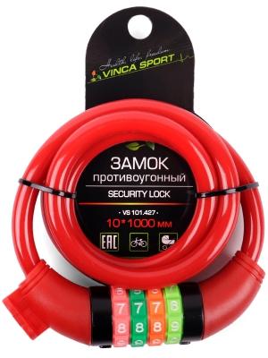 | Замок велосипедный кодовый 10*1000мм, красный тросик, инд.уп. Vinca Sport |