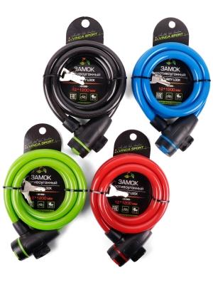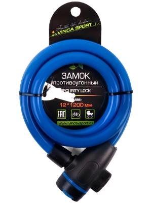 | Замок велосипедный 12*1200мм, голубой тросик, защита замка от влаги. инд.уп.Vinca Sport |