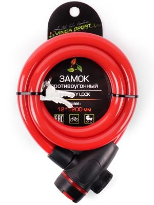 | Замок велосипедный 12*1200мм, красный тросик,, защита замка от влаги. инд.уп.Vinca Sport |