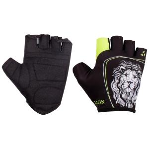 Перчатки велосипедные, LION, цвет чёрный/зелёный.