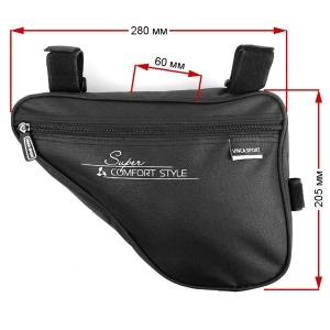 Сумка под раму, карман для телефона внутри сумки, 280*205*60мм, цвет - черный