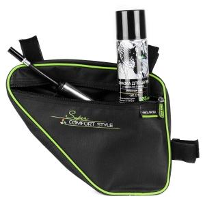 Сумка под раму, карман для телефона внутри сумки, 280*205*60мм, зеленый кант