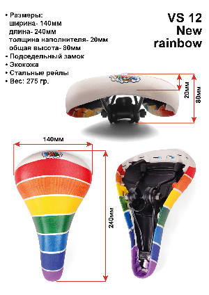 Аксессуары→Седла→Седло детское "радуга", новый дизайн, 240*140мм