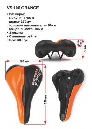 Седло, 270*170мм, черное с оранжевым, Vinca Sport