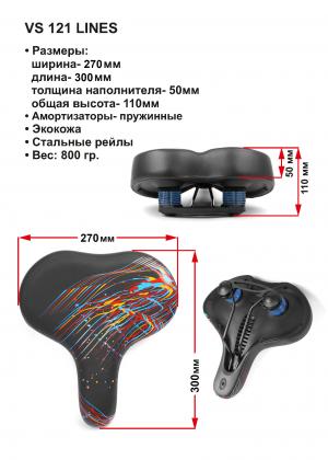 Седло комфортное, 300*270мм,с отверстием, Lines, черное, Vinca Sport