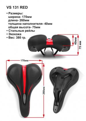 Седло,  260х170 мм, черное с красным, Vinca Sport