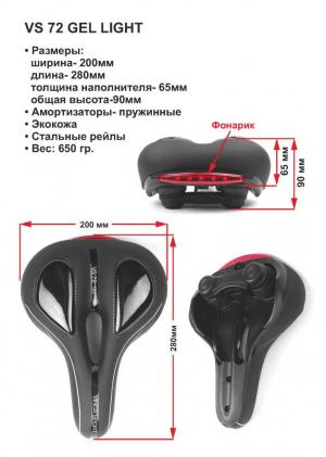 Аксессуары→Седла→Седло комфортное с фонарем, гель, 280*200мм, черное, Vinca Sport