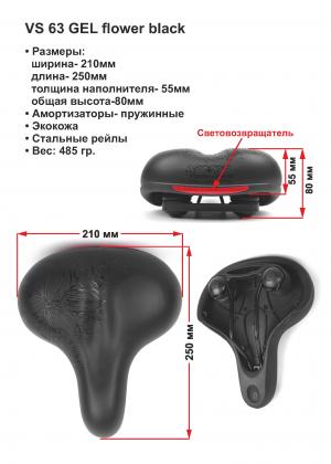 Седло комфортное, 250*210мм,с гелем, flower, черное, Vinca Sport