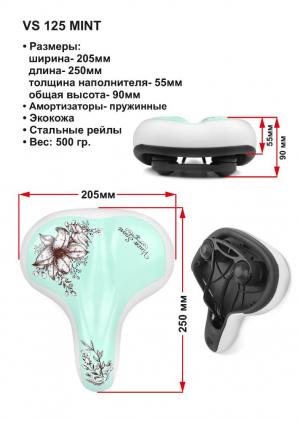 Седло комфортное, 250*205мм, голубое с белым, дизайн dreams, Vinca Sport