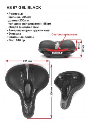 Седло комфортное, 250*205мм,с отверстием и световозвращающей поверхностью, чёрное, Vinca Sport