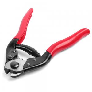 Ножницы для тросика и рубашки сделаны из стали. Вертикальная заточка, хорошо режут тросик, рубашку и гидролинию различного диаметра, исключают "растрепывание" тросика, пружинный возвратный механизм, ручки в антискользящей красной оплетке.