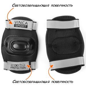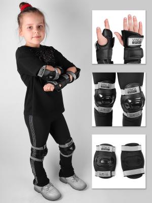 Комплект защиты детский (наколенник, налокотник, наладонник), черный со светоотр, S, M инд.