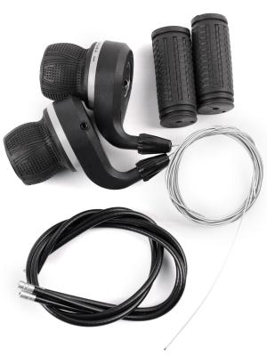 | Шифтеры индексные на 24 (3х8) скоростей c комплектующими: 2 TPR грипсы, 2 троса, 2 конц. троса, 3 ру |