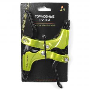 Тормозные ручки (пара), материал - алюминий, lime, черные рычаги, инд.уп. Vinca Sport