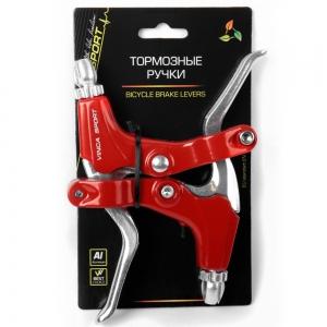 Тормозные ручки (пара), материал - алюминий, красные, серебр. рычаги, инд.уп. Vinca Sport