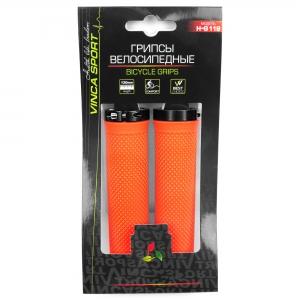 Грипсы оранжевые с зажимом чёрного цвета.
