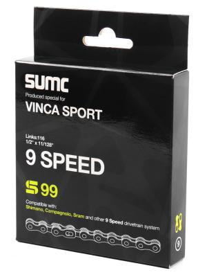 Цепь SUMC S 99, 9 ск, 116 звеньев, 1/2*11/128,  серебро, картон. упаковка