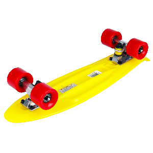 Доска-круизер, дека 22,5*6" желт.,материал деки - первичный полипропилен, колеса PU красные, подшипник ABEC 7, размер 60 мм. х 45 мм.78А, шасси -алюминий.максимальный вес пользователя - 80 кг.