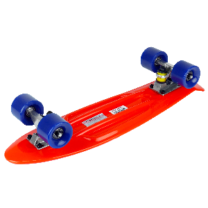 Доска-круизер, дека 22,5*6" оранж.,материал деки - первичный полипропилен, колеса PU синие,подшипник ABEC 7, размер 60*45мм 78А, шасси - алюминий, максимальный вес пользователя - 80 кг.